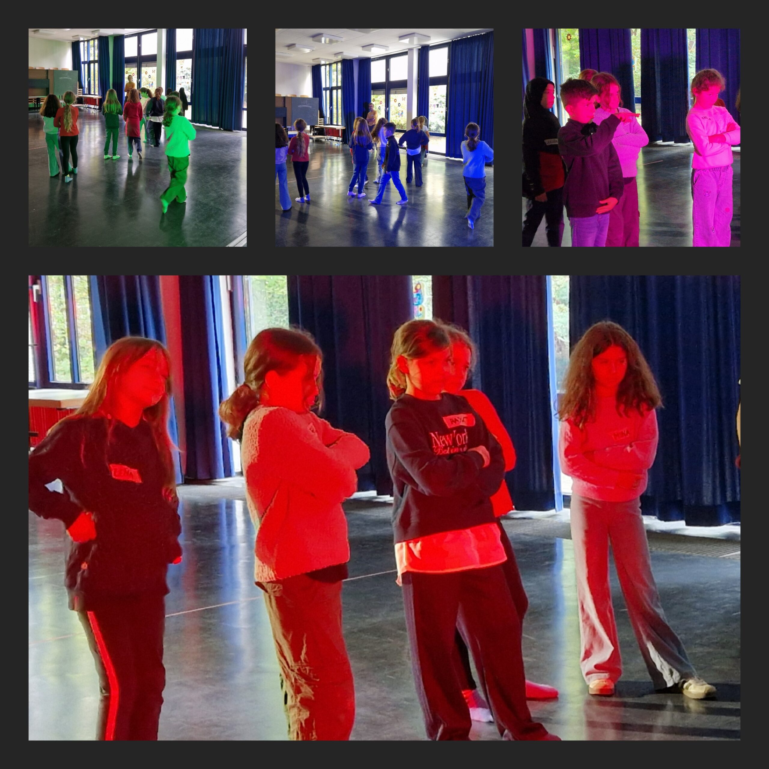 Ein neues Theaterprojekt von den Theatermachern „lunaelaltro“ ist gestartet. 13 Kinder aus der 3. und 4. Klasse erarbeiten zusammen mit den Theaterpädagogen Lorenzo und Nele von „lunaelaltro“ ein neues Theaterstück unter dem Namen „Klatsch, Bumm, Doing“. Die erzählte Geschichte beruht auf dem Kinderbuch „Die Bestimmer“ von Lisn Adbäge. Dabei werden wir auch erstmals die neu angeschafften Scheinwerfer mit buntem Licht verwenden um das Stück auch lichttechnisch richtig professionell in Szene zu setzen. Wir sind gespannt und freuen uns schon jetzt auf die Premiere am Donnerstag, den 4. Dezember 2025.