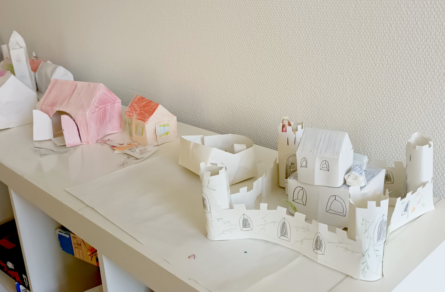 Beim Basteln waren die Ferienkinder sehr kreativ. Es fing mit einem Papierhäuschen an und entwickelte sich während der ganzen Sommerferien zunehmend weiter zu einem großen Häusermeer.