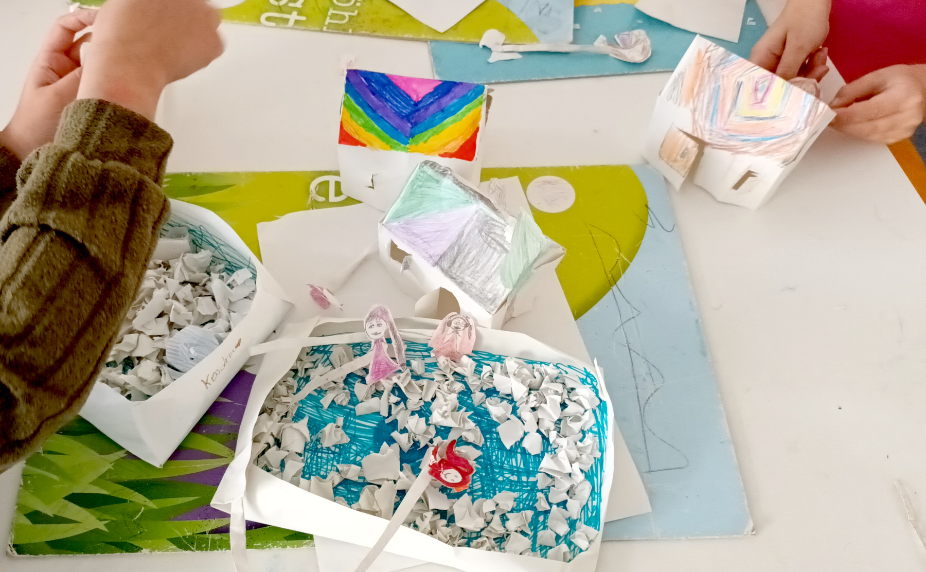 Mit Schere, Kleber und Papier entstanden diese kleinen Kunstwerke.